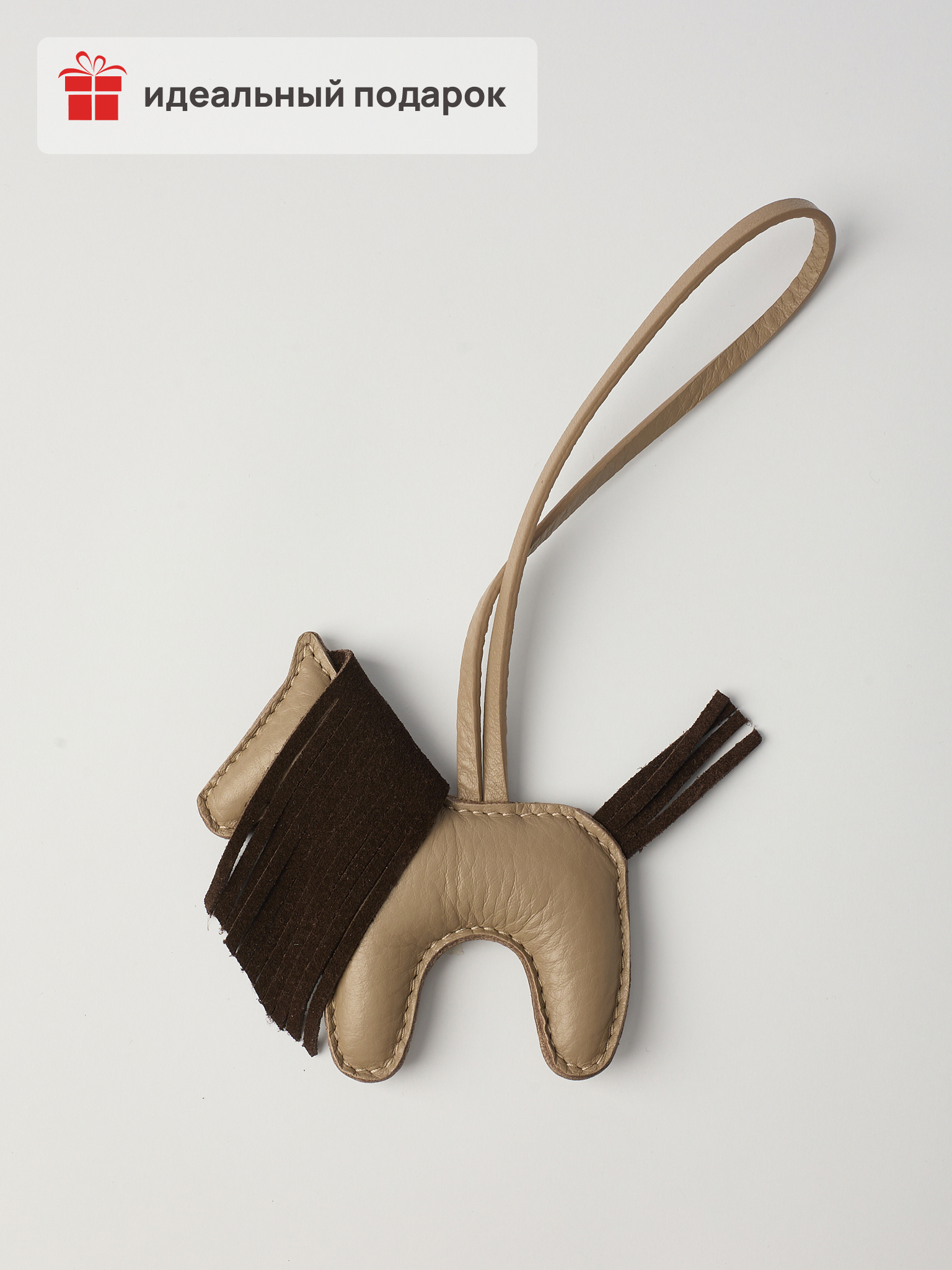 Подвес с символом наступающего года - отличное дополнение как к подарку, так и к вашей любимой сумке. Украшение из натуральной кожи с контрастной бахромой поможет расставить стильные акценты - на